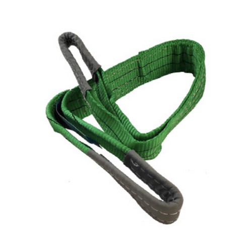 Eslinga plana con gazas. Cinta textil de doble capa cuyos extremos terminan en un ojal reforzado. 100% poliéster. Elemento intermedio de elevación que permite amarrar una carga a un grillete o a un gancho de izado. Lleva insertada etiqueta con descripción de las características necesarias para su correcto uso.